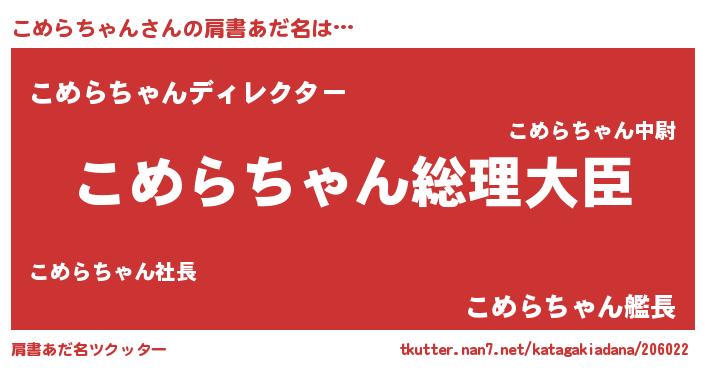 | 男性向けラノベタイトル風あだ名 | 『やはりこめらちゃんの青春ラブコメはまちがっている 』 |