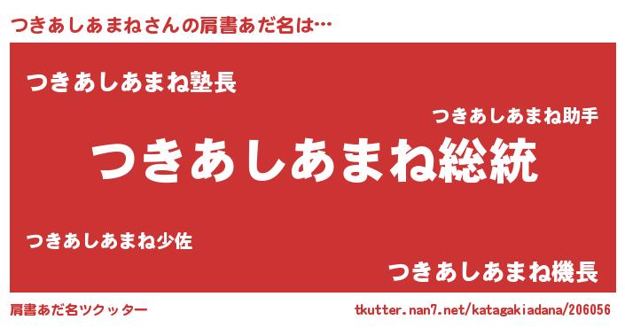 | 意味不明あだ名 | 『自称つきあしあまね』 |