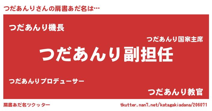 | ファンタジー風あだ名 | 『ツダディッシュ』『カークツダラー』 |