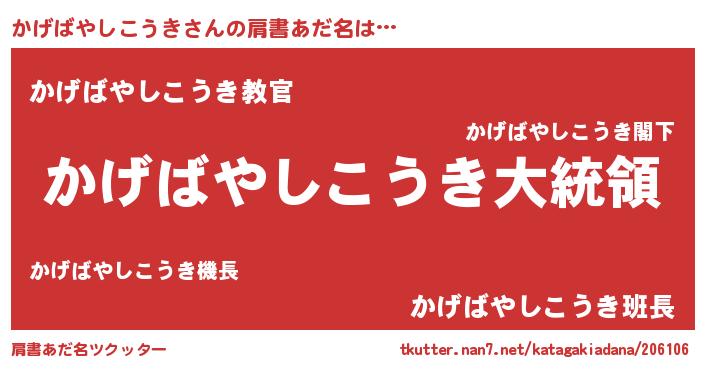 | 意味不明あだ名 | 『かげばやしこうきフォーエバー』 |