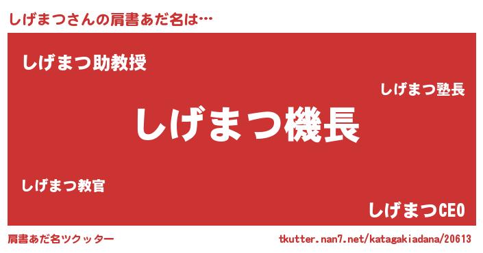 | 欧米人風あだ名 | 『しげまつ・ステッグマイヤー』 |