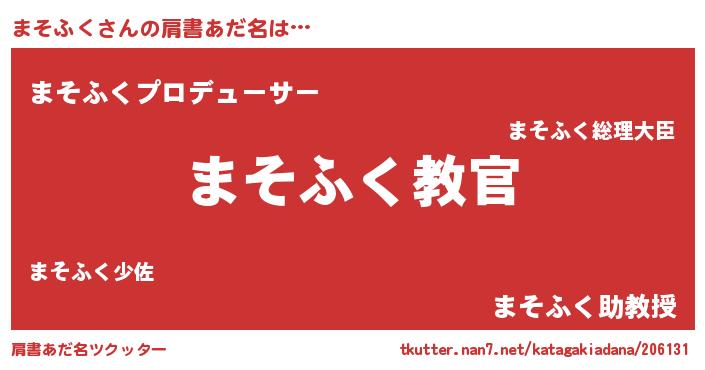 | 意味不明あだ名 | 『住所不定無職まそふく(74歳)』 |