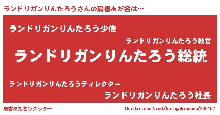 | 男性向けラノベタイトル風あだ名 | 『Re:ランドリガンりんたろうから始める異世界生活』 |