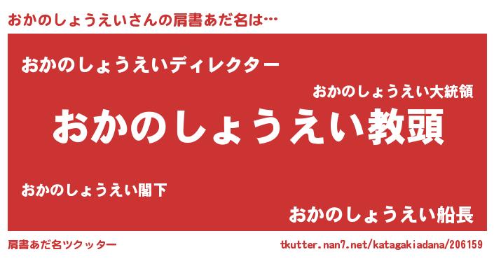 | 男性向けラノベタイトル風あだ名 | 『おかのしょうえいという概念が存在しない退屈な世界 』 |