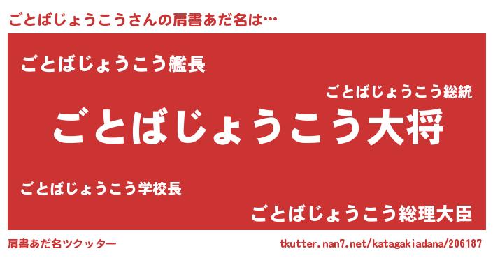 | 男性向けラノベタイトル風あだ名 | 『ゴトバジョウコウスレイヤー』 |