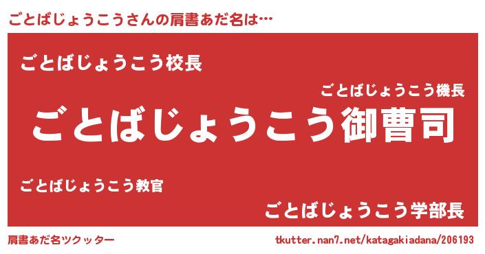 | ヒーロー風カッコイイあだ名 | 『スーパーゴトバジョウコウ』 |