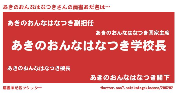 | 女子向けラノベタイトル風あだ名 | 『あきのおんなはなつき恋絵巻』 |