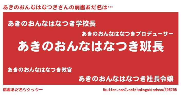 | 女子向けラノベタイトル風あだ名 | 『あきのおんなはなつきは平凡を望む』 |