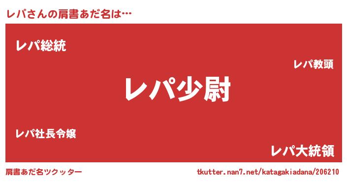| 男性向けラノベタイトル風あだ名 | 『転生したらレパだった件』『レパの憂鬱』 |
