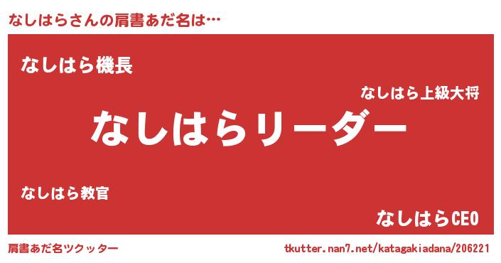 | 意味不明あだ名 | 『とにかく怪しいなしはら』 |