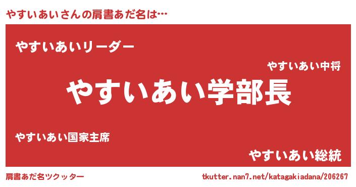 | ピコ太郎風あだ名 | 『ヤヤ太郎』『ヤス六郎』『ピヤ六郎』 |