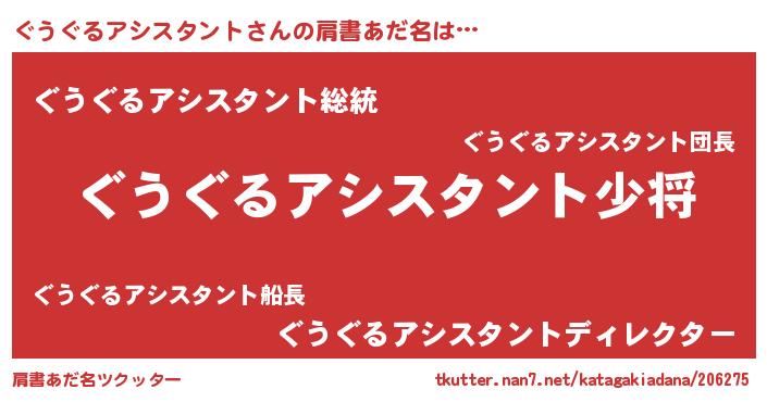 男性向けラノベタイトル風あだ名 | 『ぐうぐるアシスタント~年齢イコール彼女いない歴の魔法使い~』 |