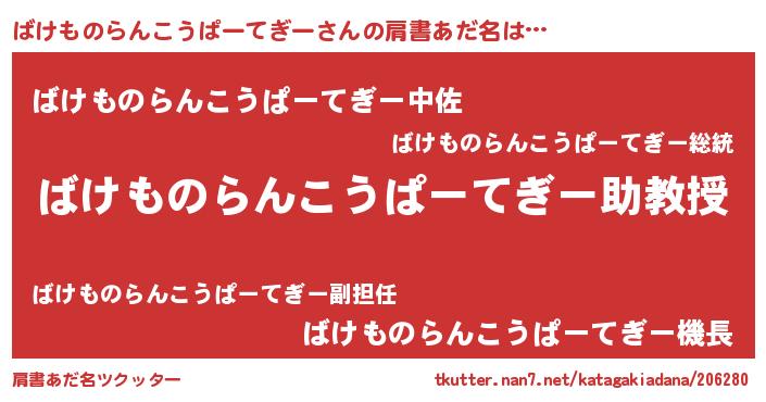 ヒーロー風カッコイイあだ名 | 『正義の使者ばけものらんこうぱーてぎー』 |