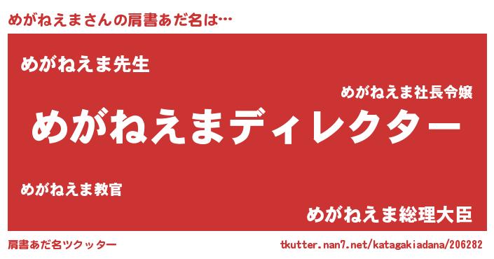 男性向けラノベタイトル風あだ名 | 『めがねえまに滅ぼされるだけの簡単なお仕事です』 |