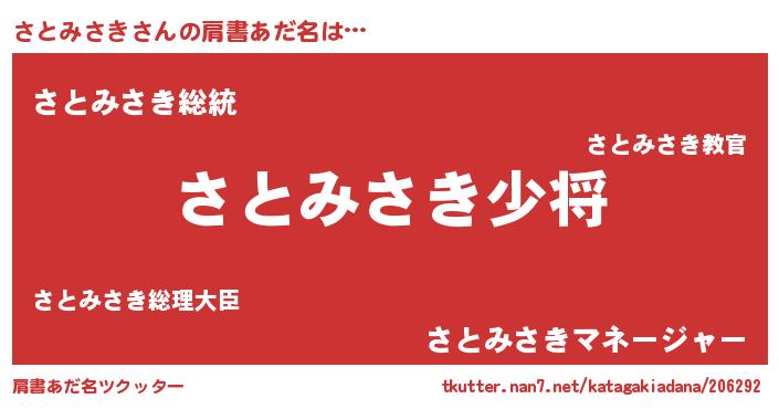 | 男性向けラノベタイトル風あだ名 | 『さとみさき~年齢イコール彼女いない歴の魔法使い~』 |