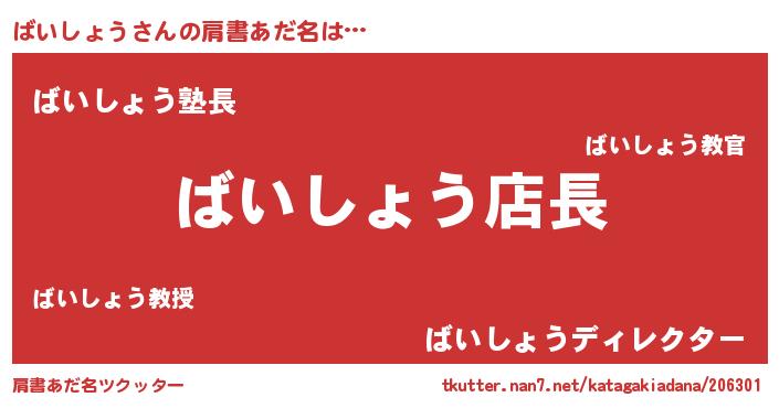 | 男性向けラノベタイトル風あだ名 | 『ばいしょうの憂鬱』 |