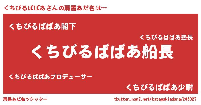 くちびるばばあさんの肩書あだ名は… 『くちびるばばあ船長』『くちびるばばあ閣下』『くちびるばばあ少尉』 ツクッター #肩書あだ名ツクッター http://tkutter.nan7.net/katagakiadana/206327/