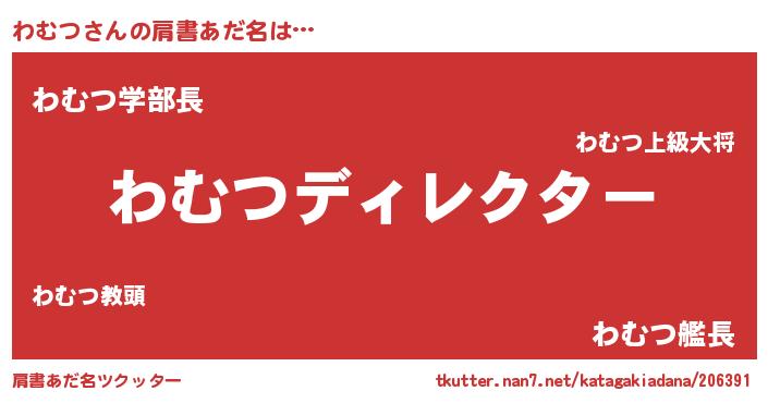 | ヘコむあだ名 | 『わむつ(爆)』『豆乳』『わむ太郎』 |