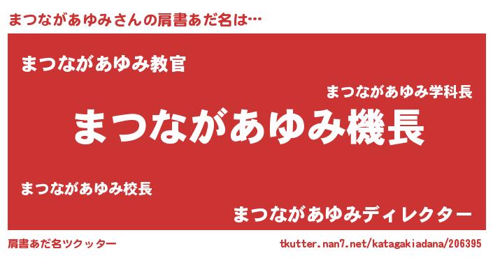 男性向けラノベタイトル風あだ名 | 『うちのまつながあゆみが世界を掌握している!』 |