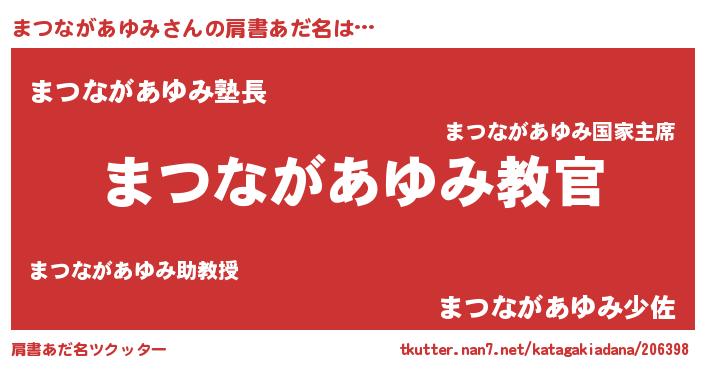 | 男性向けラノベタイトル風あだ名 | 『この素晴らしい世界にまつながあゆみを!』 |