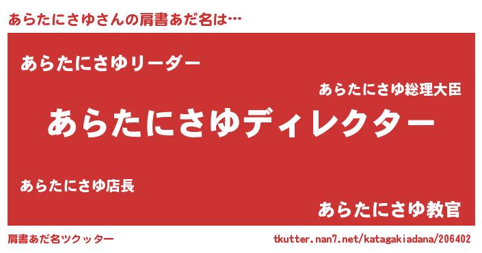 男性向けラノベタイトル風あだ名 | 『あらたにさゆに滅ぼされるだけの簡単なお仕事です』 |