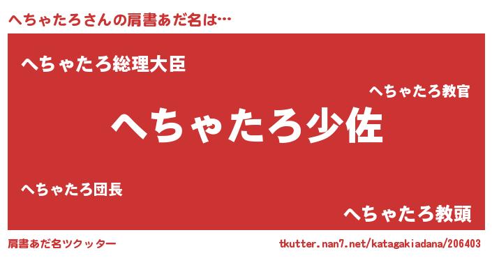 欧米人風あだ名 | 『トリンドルへちゃたろ』 |