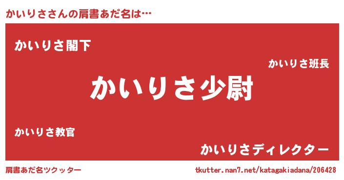 | ヒーロー風カッコイイあだ名 | 『超時空戦士カイリサ』『黄金騎士カイ』 |