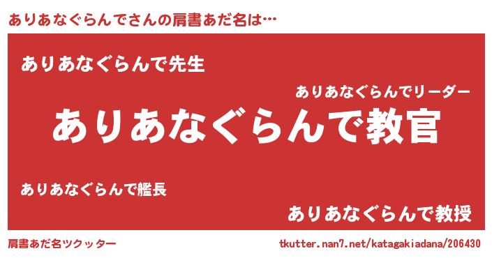 | 意味不明あだ名 | 『住所不定無職ありあなぐらんで(8歳)』 |