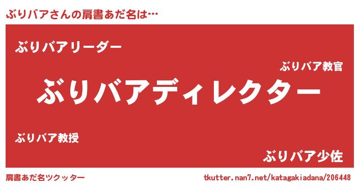 | 男性向けラノベタイトル風あだ名 | 『ぶりバアに滅ぼされるだけの簡単なお仕事です』 |