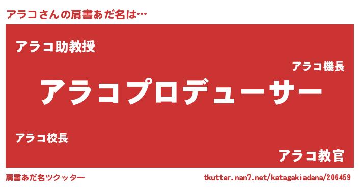 | ヘコむあだ名 | 『アラコ(苦笑)』『豆乳』『アラにー』 |