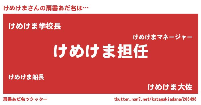 | 男性向けラノベタイトル風あだ名 | 『けめけまという概念が存在しない退屈な世界 』 |