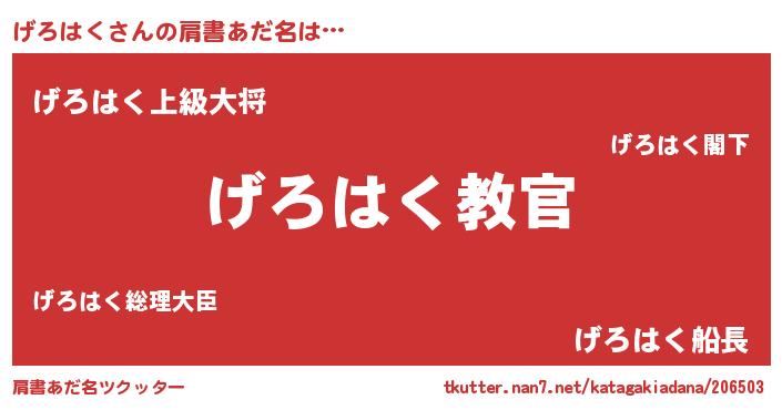 | 男性向けラノベタイトル風あだ名 | 『魔弾の王とげろはく』 |