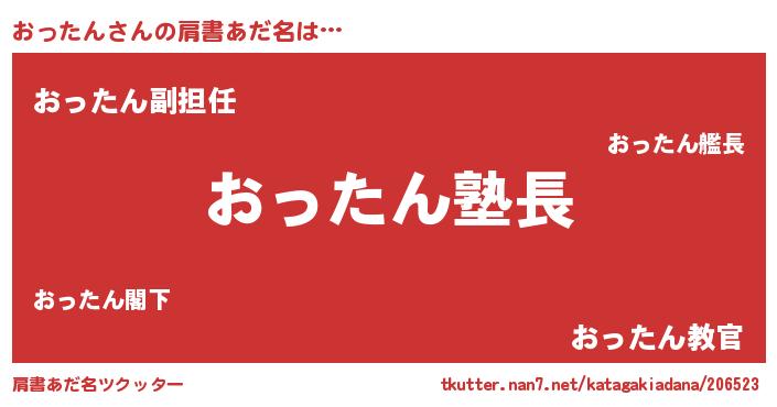 | 女子向けラノベタイトル風あだ名 | 『おったんは平凡を望む』『闇のおったん』 |