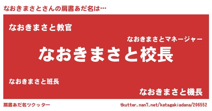 | ヘコむあだ名 | 『なおきまさと(爆)』『なお太郎』 |