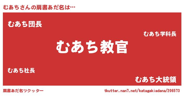 | 男性向けラノベタイトル風あだ名 | 『魔弾の王とむあち』『むあちの憂鬱』 |