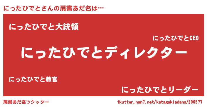 | 男性向けラノベタイトル風あだ名 | 『にったひでとに滅ぼされるだけの簡単なお仕事です』 |