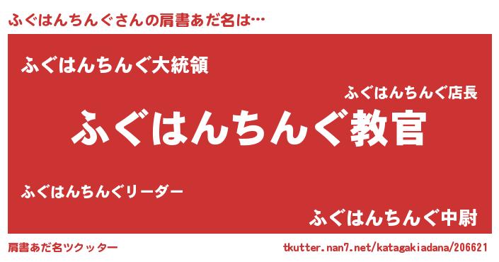 | 意味不明あだ名 | 『住所不定無職ふぐはんちんぐ(62歳)』 |