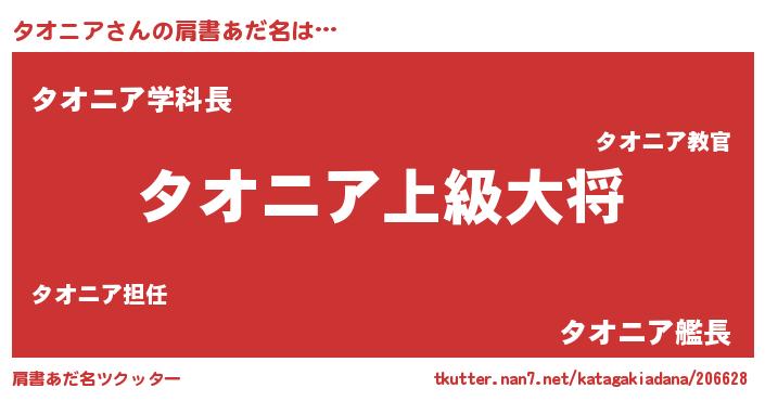 | 男性向けラノベタイトル風あだ名 | 『タオニアスレイヤー』『緋弾のタオニア』 |