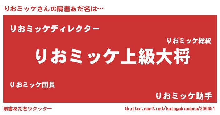 | 男性向けラノベタイトル風あだ名 | 『転生したらりおミッケだった件』 |