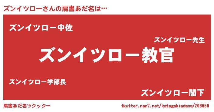 | 男性向けラノベタイトル風あだ名 | 『この素晴らしい世界にズンイツローを!』 |