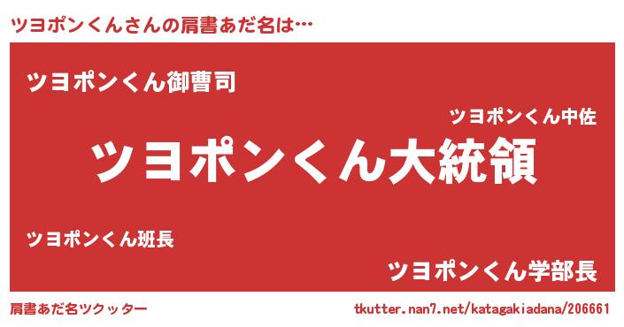 | 意味不明あだ名 | 『ツヨポンくんフォーエバー』 |