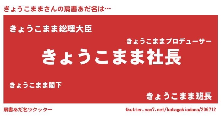| 女子向けラノベタイトル風あだ名 | 『きょうこまま姫と円卓の騎士』 |