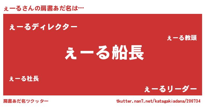 | 胡散臭い通販商品みたいなあだ名 | 『信頼と実績のサプリメント…その名も「ぇーる」』 |