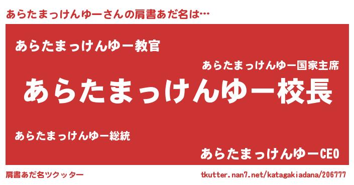 | 伝説のあだ名 | 『聞きしに勝る暗殺者あらたまっけんゆー』 |