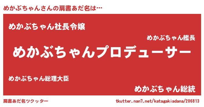 | 男性向けラノベタイトル風あだ名 | 『めかぶちゃんに滅ぼされるだけの簡単なお仕事です』 |