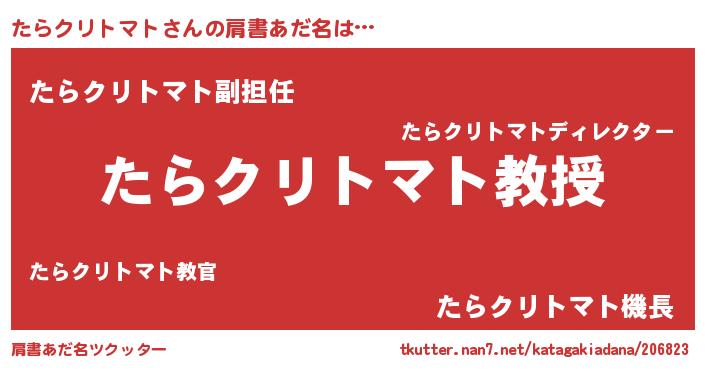 ヘコむあだ名 | 『たらクリトマト(小並感)』『たらっふぃ~』 |
