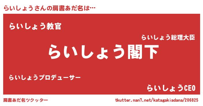 男性向けラノベタイトル風あだ名 | 『Re:らいしょうから始める異世界生活』 |