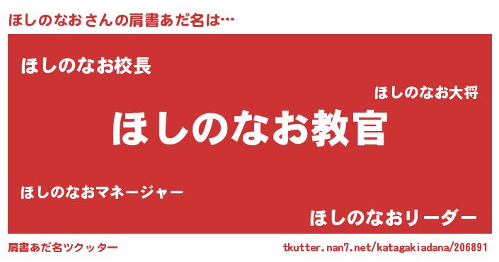 男性向けラノベタイトル風あだ名 | 『この素晴らしい世界にほしのなおを!』 |