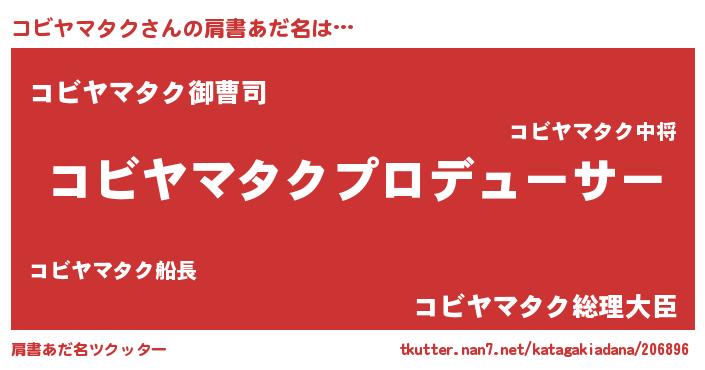 | 男性向けラノベタイトル風あだ名 | 『はたらくコビヤマタクさま!』 |