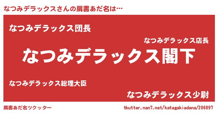 | 女子向けラノベタイトル風あだ名 | 『なつみデラックスなんてお断りですっ。』 |